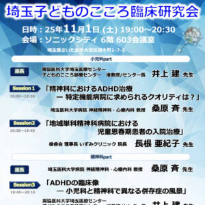 1. 日時 令和7年7月5日(土) 午後5時〜午後6時2. 場所 埼玉県県民健康センター 1階 大会議室 B3. テーマ 『あなたの外来にも来る原発性免疫不全症』4. 講師 防衛医科大学校 小児科教授 今井 耕輔 […]